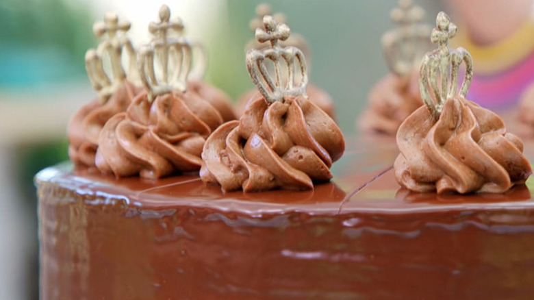 Torta setteveli cakes are not easy to make, largely due to their sheer number of layers. They consist of two chocolate cake layers, two layers of hazelnut cream, one layer of hazelnut crunch, and one layer of chocolate mousse -- all topped with a mirror glaze. At the time, the torta setteveli was the longest technical challenge in the show's history, with bakers given three and a half hours to impress the judges.