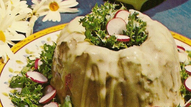 Anyone who grew up during the '50s and '60s is likely to remember this particularly unique dish. In fact, we're sure countless people across the U.S. have memories of Jell-O salads proudly on display at potlucks and family gatherings. These so-called salads were gelatin-based and contained ingredients mashed together, many of which had absolutely no business being suspended in lime or lemon-flavored gelatin.