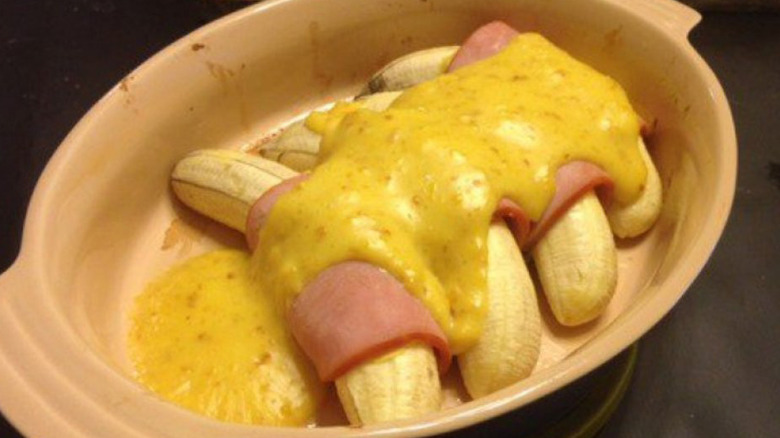 A recipe dating back to the 1970s, it's hard to believe that a dish like this was ever actually a fad. After all, the combination of ham, banana, hollandaise sauce, mustard, and cream is quite the head-turner -- and not something you'd expect to find in a recipe book. Yet a recipe for banana and ham hollandaise did, in fact, appear in a mid-70s publication of assorted American dishes (released as a special edition by McCall's magazine).