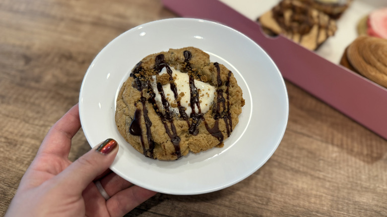 If there's one thing I've learned about summer flavors, it's that companies are generally far too confident in the ability to create a dessert resembling a campfire s'more. Nevertheless, every summer, various chains attempt to create s'more-flavored options. McDonald's, for one, unveiled a completely underwhelming s'more McFlurry. In similar fashion, Crumbl offered a s'more cookie.